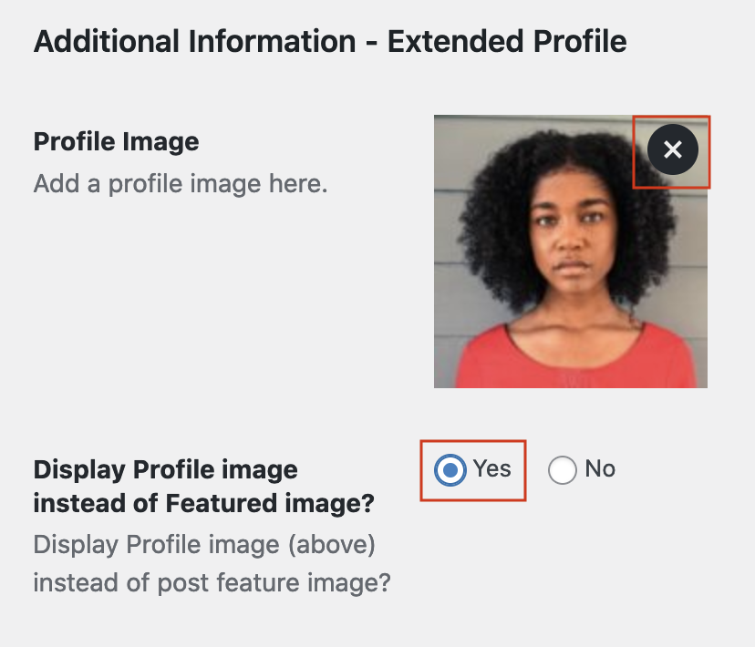Also make sure to click Yes on the field below title Display Profile image instead of Featured Image. This will enable your uploaded profile image to be displayed throughout the website instead of the generic decal image created by WordPress.