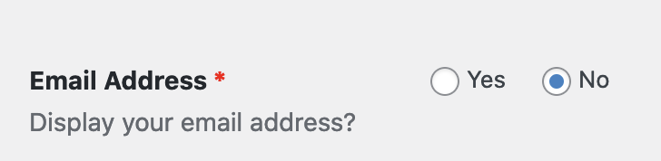 To choose whether you wish to have your email address visible as part of your custom profile page. To do this, locate the Email address field (below the Your Location field) and choose Yes or No.